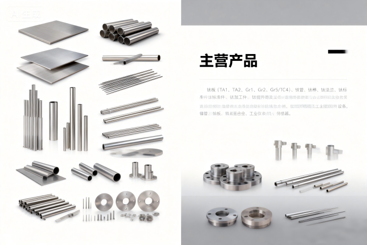 公司主营产品包括:钛板(TA1、TA2、Gr1、Gr2、Gr5/TC4)、钛管、钛棒、钛法兰、钛标准件、钛加工件、钛搅拌器及工业搅拌设备,同时提供镍管、镍板、镍基合金、工业仪表、传感器等产品与配套服务。